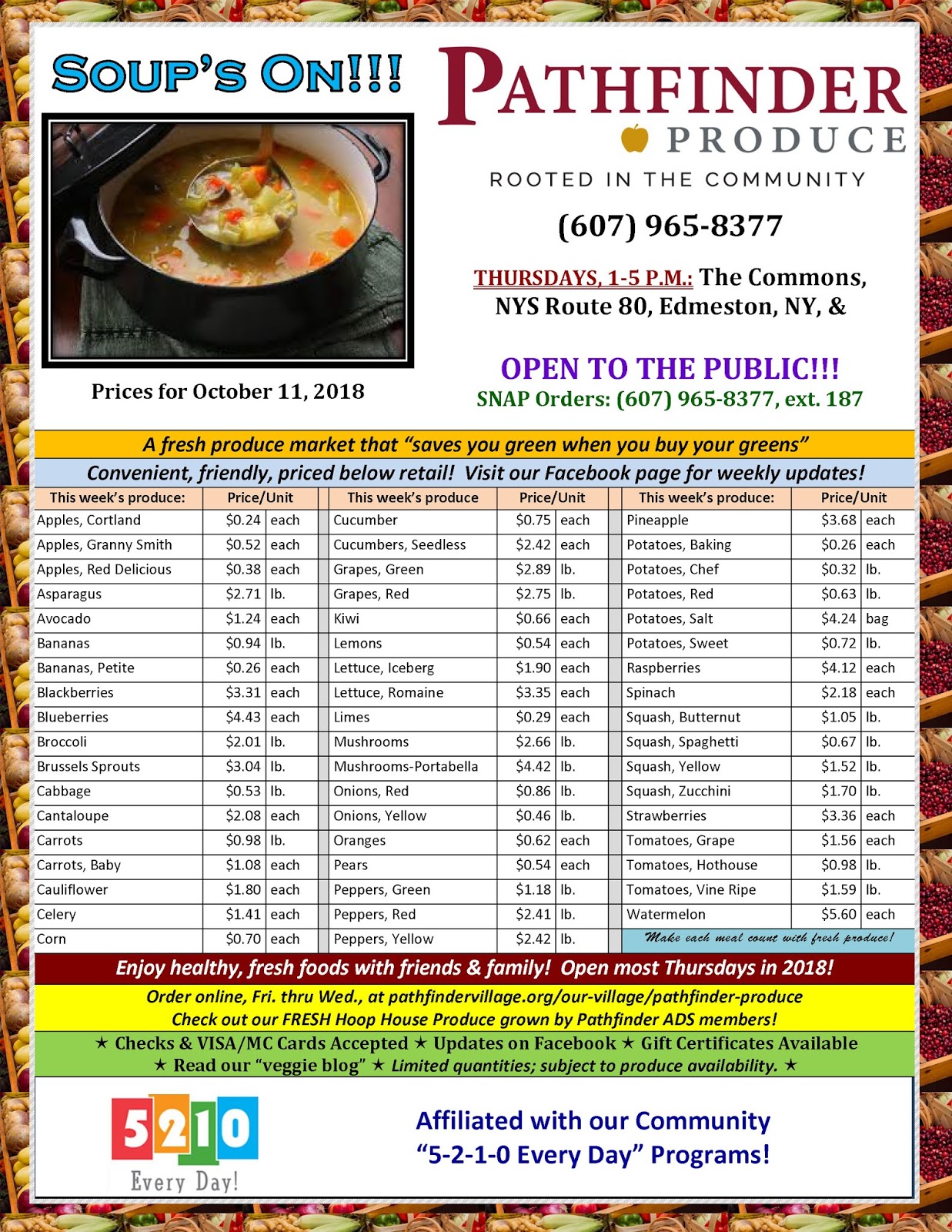 We hope to see all our friends and neighbors at Pathfinder Produce this week on Thursday from 1 to 5 p.m.; please help us spread the word about our well-stocked and competitively-priced market. If you know of others who would like to get onto our regular weekly produce price email list, please just let me know at lgrace@pathfindervillage.org.